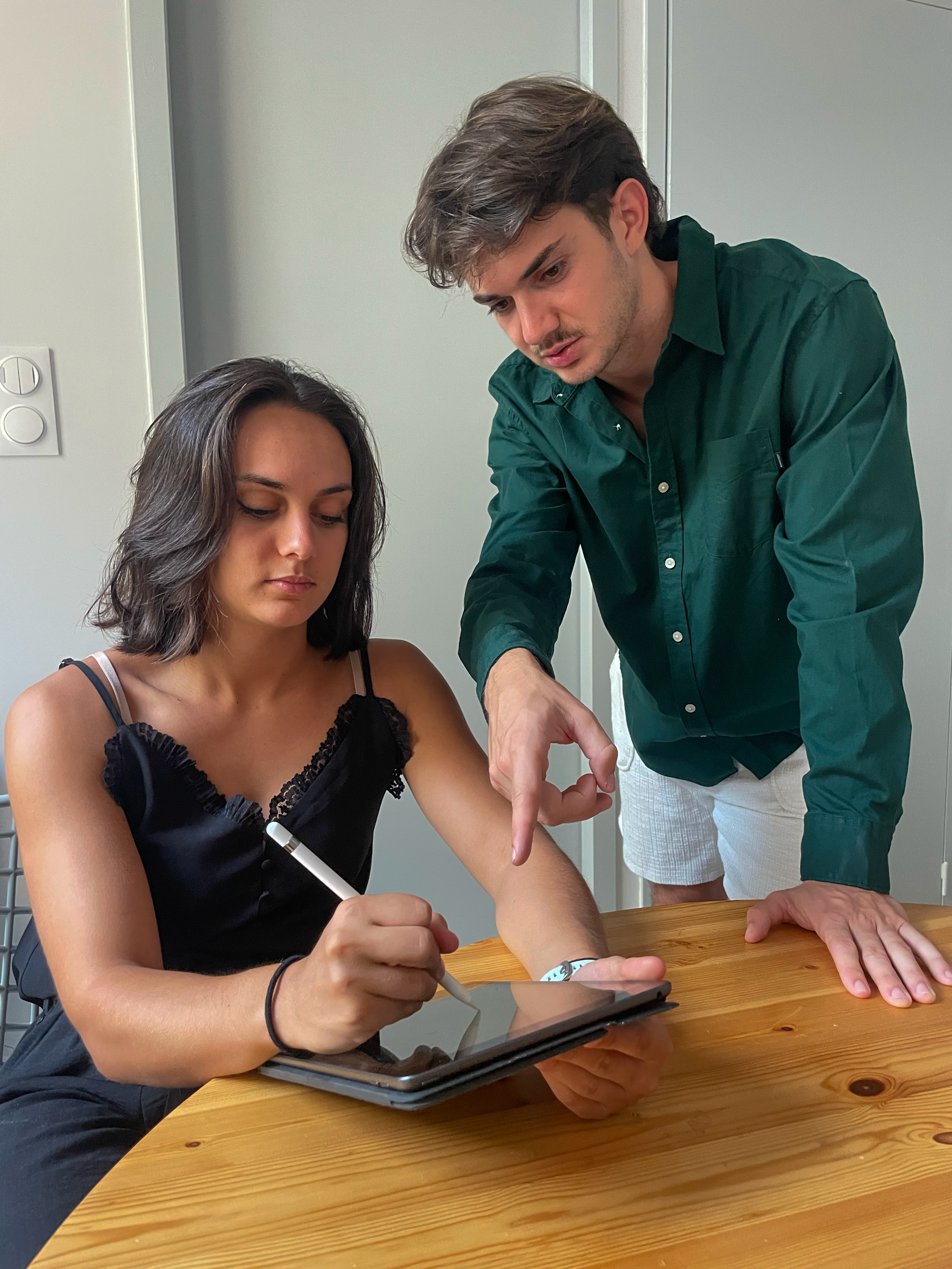 Cette idée est portée à deux, par un frère et une sœur. L’une dessine : elle cherche la ligne juste, la couleur qui laisse respirer le lieu. L’autre veille à ce que tout prenne corps et arrive intact jusqu’à celles et ceux qui l’accrocheront.